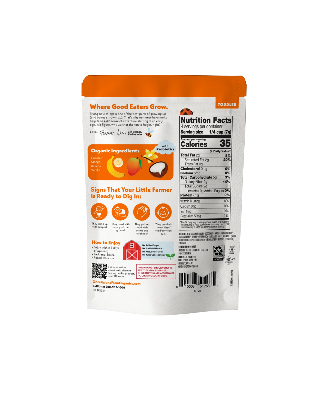 - Organic, toddler dairy-free meltaway bites with added probiotics